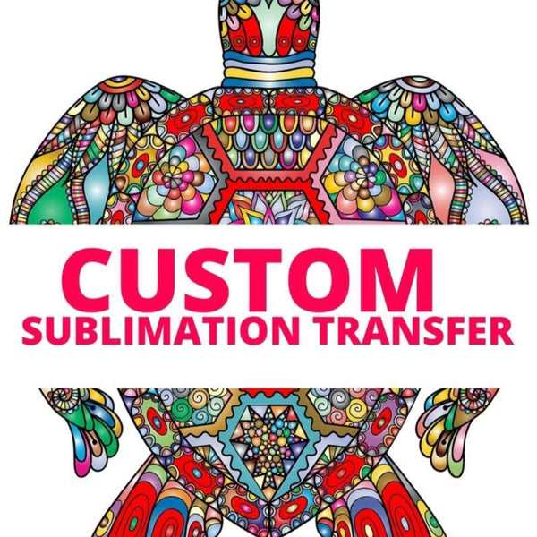 Sublimation Transfers are used to print on white or light Polyester material or products that have a polymer coating made for sublimation. The image from the transfer is dyed into the fabric/product using a heat press. Sublimations are printed in CMYK without white ink, so your designs with white will show as the color of the garment or material you are pressing on.